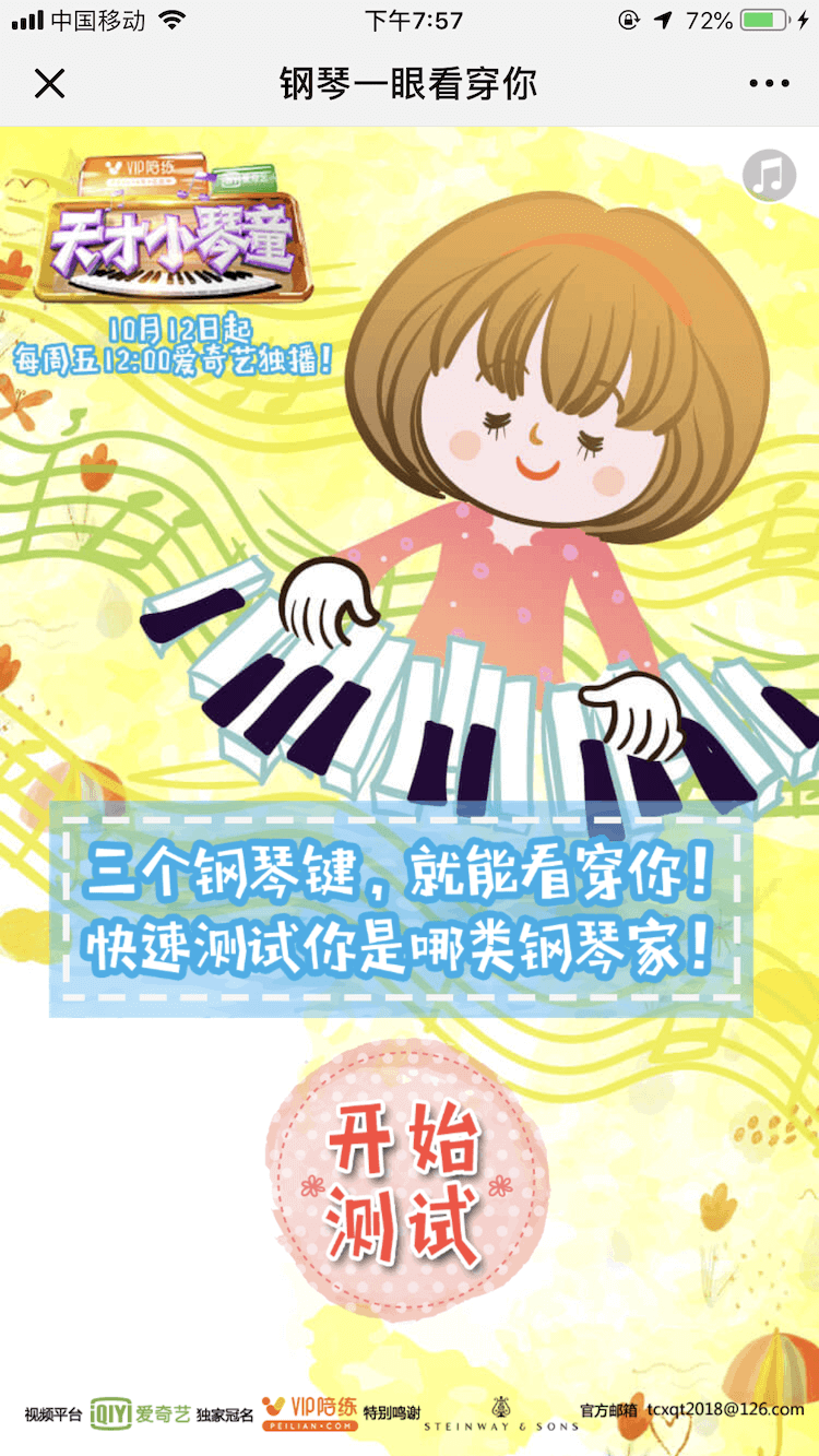 扫描/识别以上二维码或直接用手机访问 天才小琴童。