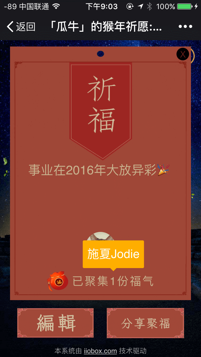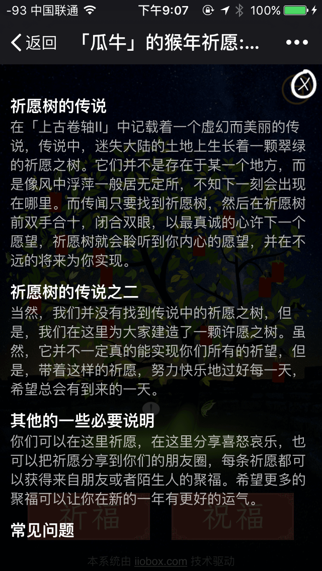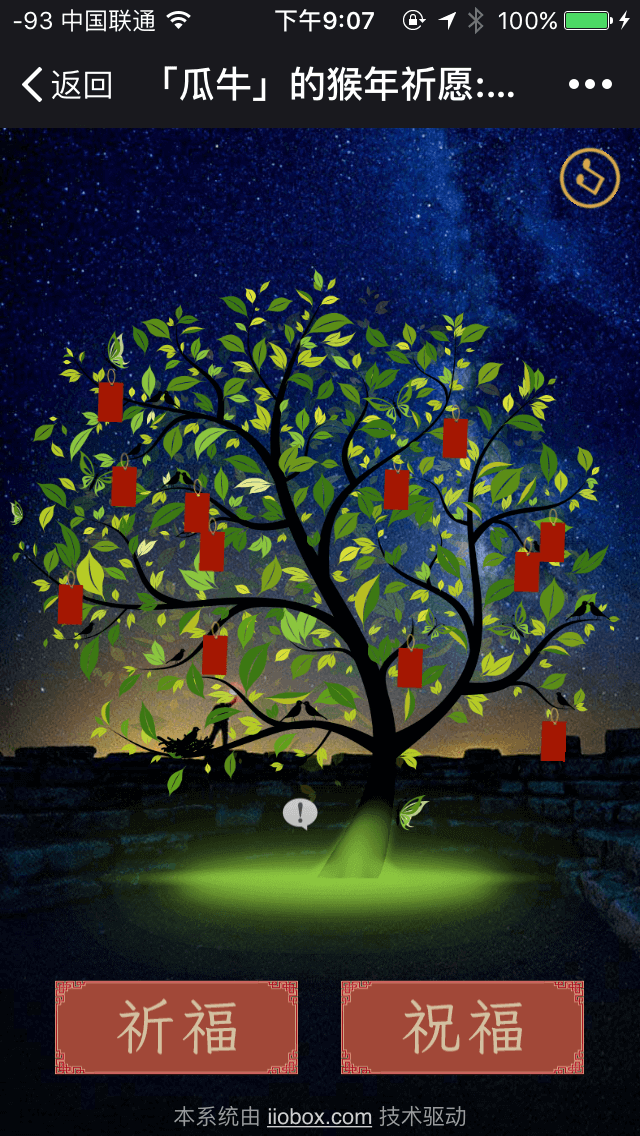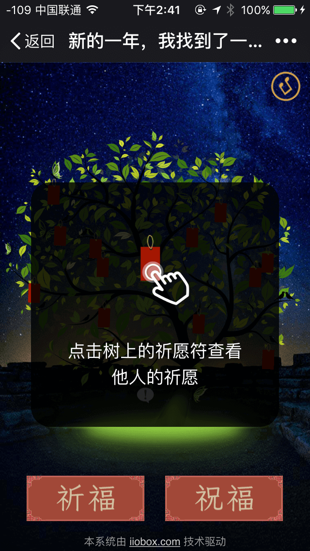 为2016年中国新年策划的H5。大家可以在祈愿之树许下自己新的一年的愿望或者目标,给自己一个新的希望。